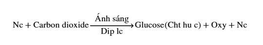 Nước + Khí carbon dioxide $\xrightarrow[\text{Diệp lục}]{\text{Ánh sáng}}$ Chất hữu cơ (Glucose) + Khí oxygen