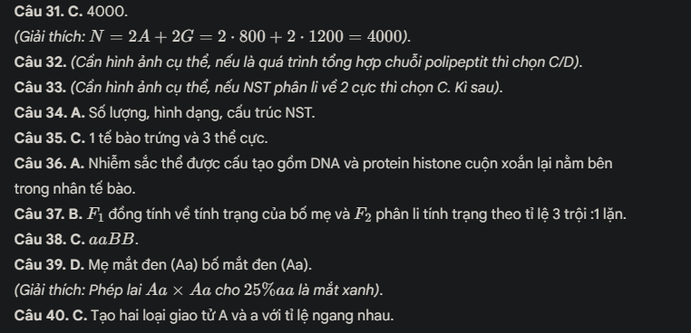 PHẦN SINH HỌC (Câu 29 - Câu 40)