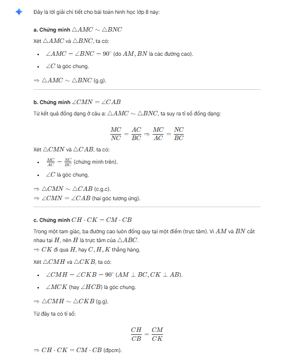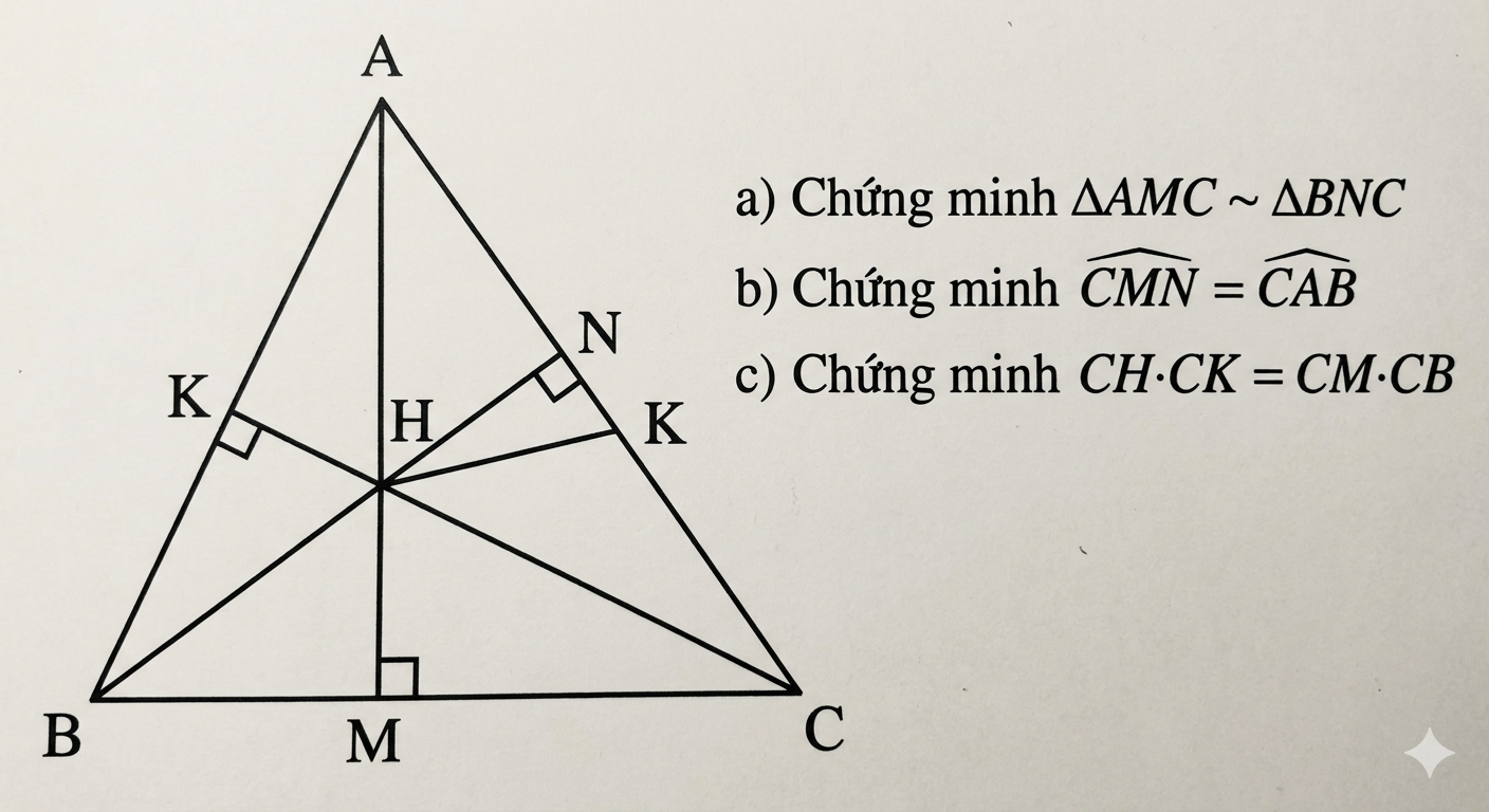Cho tam giác ABC có 3 góc nhọn, hai đường cao AM và BN cắt nhau tại H