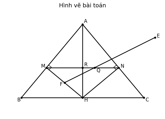 c) Trên tia đối của tia NH lấy điểm E sao cho NE=NH. Gọi F là trung điểm của MH. Gọi R, Q lần lượt là giao điểm của AH, EF với MN. Chứng minh: MN=6.RQ