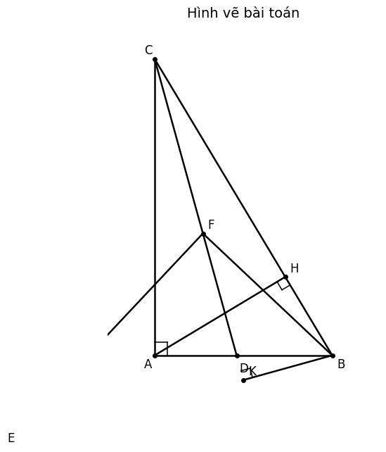 BK ⟂ CD ⇒ BK ⟂ CF ⇒ ∠BKE = 90° (vì E ∈ BK)