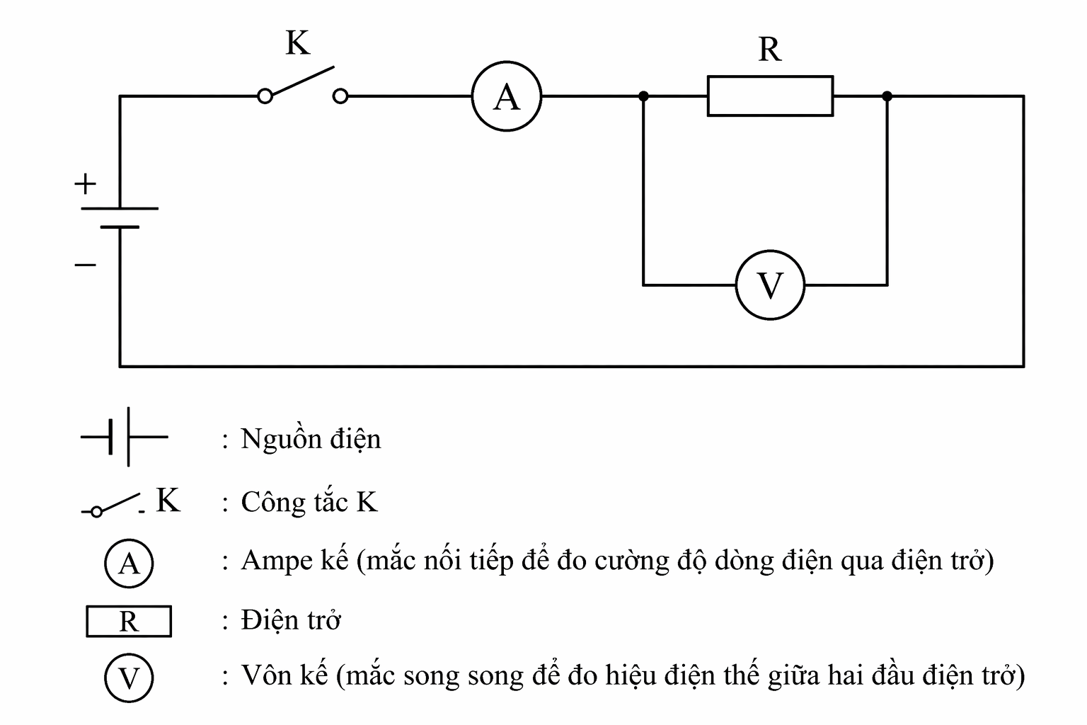 Vôn kế dùng để đo hiệu điện thế giữa hai đầu điện trở