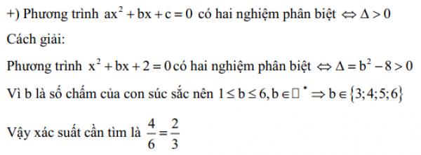 Gieo một con súc sắc cân đối và đồng chất. Giả sử súc sắc xuất hiện mặt b chấm. Xác suất để phương trình có hai nghiệm phân biệt là