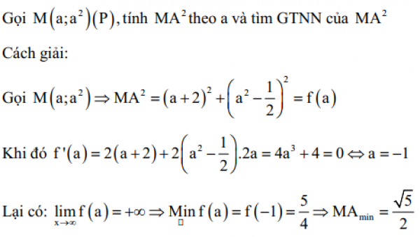 Cho . Gọi M là một điểm bất kì thuộc (P). Khoảng cách MA bé nhất là
