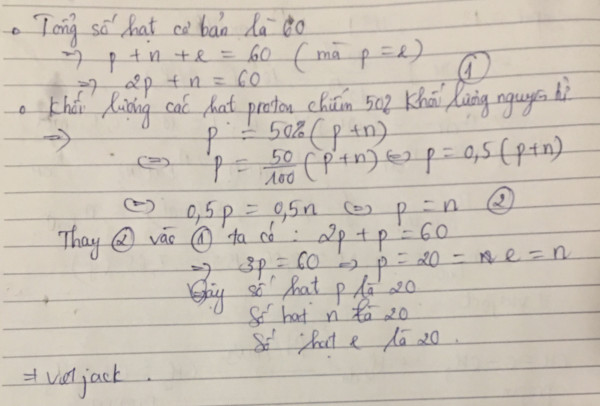 Nguyên tử R có tổng số hạt cơ bản là 60. Khối lượng của các hạt proton chiếm 50% khối lượng nguyên tử. Xác định số lượng mỗi loại hạt
