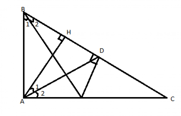 từ (1) và (2) => góc HAD = góc DAE ( cừng bằng góc ADE)