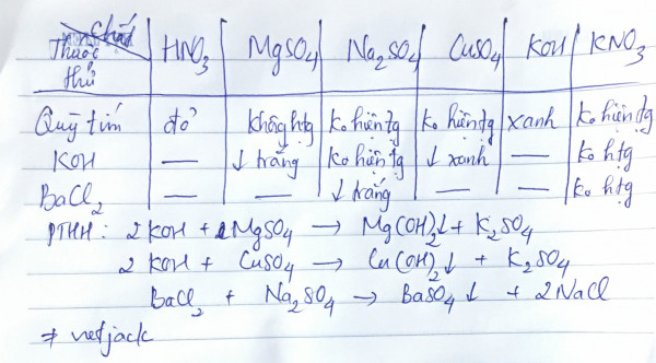 HNO3 MgSO4 Na2SO4 CuSO4 KOH KNO3
