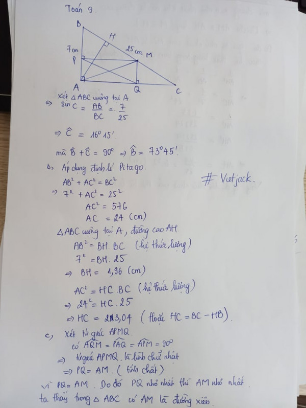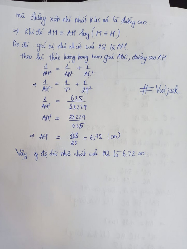 cm: PQ=AM. Hãy xác định độ dài nhỏ nhất của PQ