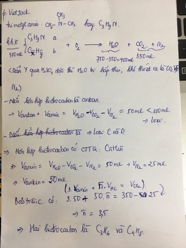 Đốt cháy hoàn toàn 100 ml hỗn hợp khí X gồm trimetylamin và hai hiđrocacbon đồng đẳng kế tiếp bằng một lượng oxi vừa đủ, thu được 750 ml hỗn hợp Y gồm khí và hơi. Dẫn toàn bộ Y đi qua dung dịch đặc (dư). Thể tích khí còn lại là 350 ml. Các thể tích khí và hơi đo cùng điều kiện. Hai hiđrocacbon đó là