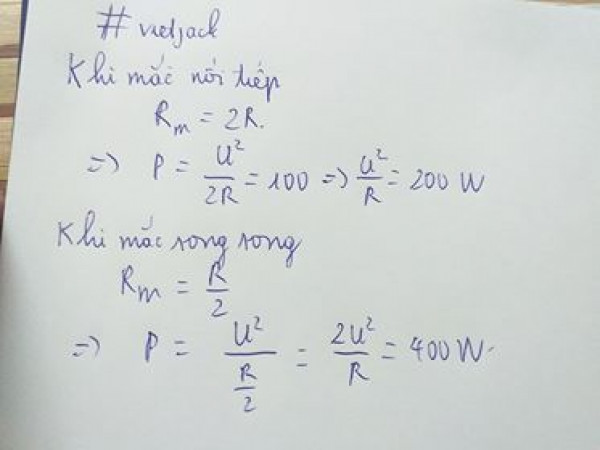 Khi hai điện trở giống nhau mắc nối tiếp vào 1 hiệu điện thế U không đổi người ta đo được bằng công suất tỏa nhiệt trên đoạn mạch là 100W hỏi nếu hai điện trở giống nhau mắc song song và cìng mắc vào hiệu điện thế U trên công suất toả nhiệt trên đoạn mạch là bao nhiu