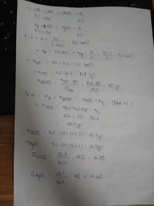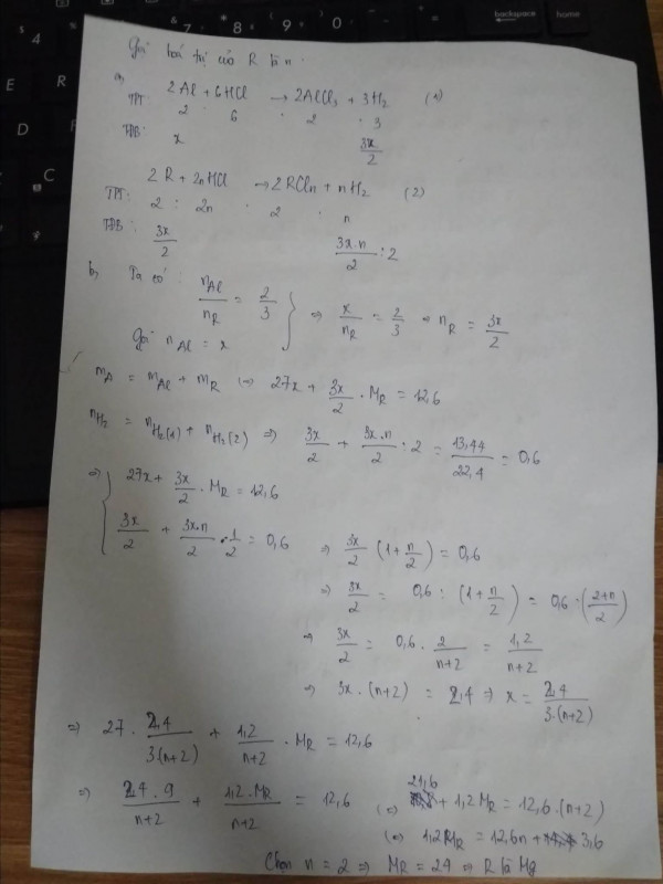 Cho 12,6 gam A gồm Al và R tác dụng với dung dịch HCl 29,2%. Sau phản ứng thu được dung dịch A và 13,44 l