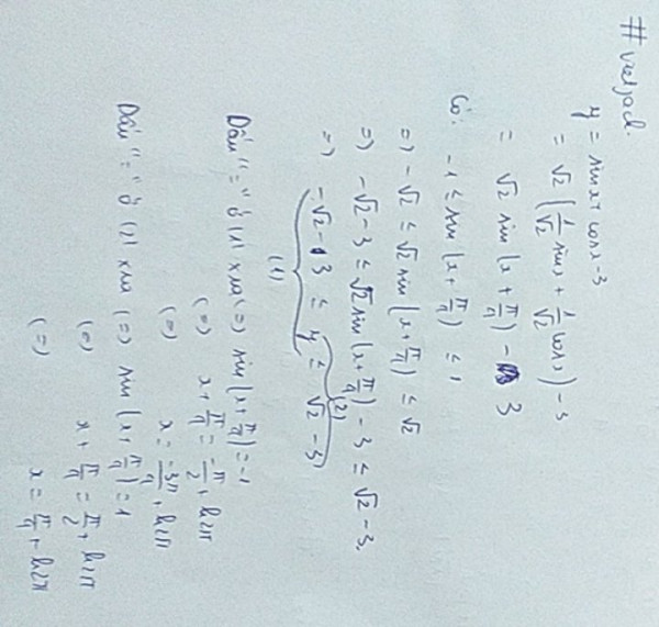 Giá trị nhỏ nhất, lớn nhất của y=sinx + cosx - 3