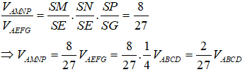 Cho khối tứ diện ABCD có thể tích 2017. Gọi M, N, P, Q lần lượt là trọng tâm của các tam giác ABC, ABD, ACD, BCD. Tính theo V thể tích của khối tứ diện MNPQ.