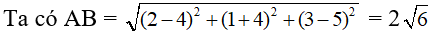Gọi I, R là tâm và bán kính của mặt cầu (S) suy ra R =AB/2 = √6 và I(3; - 1; 4).