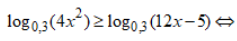 Biết tập nghiệm S của bất phương trình log0,3( 4x2) ≥ log0,3( 12x-5) là một đoạn. Gọi m, M lần lượt là giá trị nhỏ nhất, lớn nhất của tập S. Mối liên hệ giữa m và M là