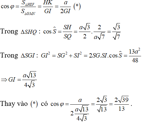 Mà d ⊥ (SIH) nên góc giữa góc giữa hai mặt phẳng (GMN) và (ABCD) là