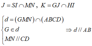 Gọi H, I lần lượt là trung điểm của AB, CD.