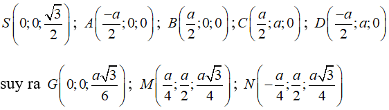 Ta có mặt phẳng (ABCD) có vectơ pháp tuyến là , mặt phẳng (GMN) có vectơ pháp tuyến là