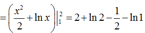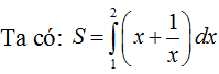 Tính diện tích hình phẳng giới hạn bởi : Đồ thị hàm số y = x + , trục hoành , đường thẳng x = 1 và x = 2