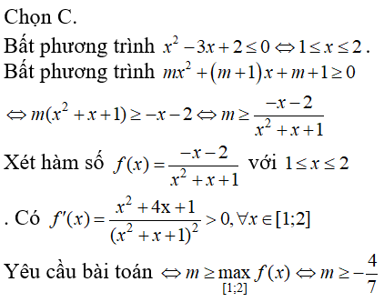 Tìm tất cả các giá trị thực của tham số m sao cho mọi nghiệm của bất phương trình: cũng là nghiệm của bất phương trình ?