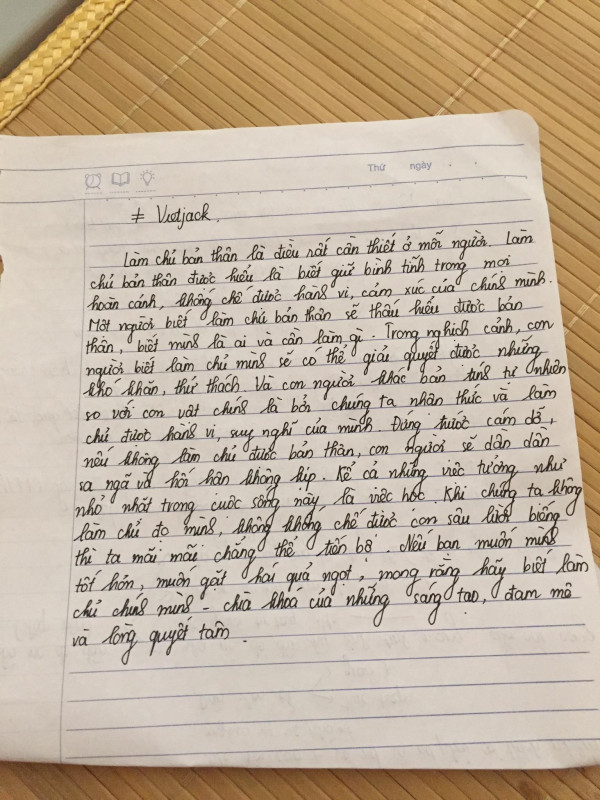 Trong cuộc sống đầy rẫy cám dỗ và áp lực, khả năng làm chủ bản thân trở thành một yếu tố then chốt quyết định sự thành bại và hạnh phúc của mỗi người. Làm chủ bản thân không có nghĩa là kiểm soát mọi thứ xung quanh, mà là khả năng tự điều chỉnh cảm xúc, suy nghĩ và hành vi của mình trước mọi hoàn cảnh. Điều này đòi hỏi sự nhận thức rõ ràng về điểm mạnh, điểm yếu của mình, cùng với ý chí sắt đá để kiên trì theo đuổi mục tiêu đã đề ra. Người làm chủ được bản thân sẽ biết kiềm chế những ham muốn tức thời (như lướt điện thoại, trì hoãn công việc) để tập trung vào những giá trị lâu dài (như học tập, rèn luyện sức khỏe). Ngược lại, người thiếu khả năng này dễ dàng bị chi phối bởi cảm xúc tiêu cực, bị cuốn theo những thói quen xấu, dẫn đến lãng phí thời gian và đánh mất cơ hội. Do đó, rèn luyện khả năng làm chủ bản thân ngay từ sớm là vô cùng cần thiết để mỗi người tự tin định hướng cuộc sống và kiến tạo tương lai tốt đẹp hơn.