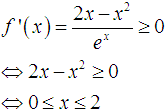 Cho hàm số f(x) = x2e-x. Bất phương trình có tập nghiệm là: