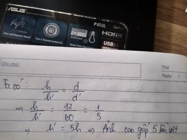 b. Tính xem ảnh cao gấp bao nhiêu lần vật ?