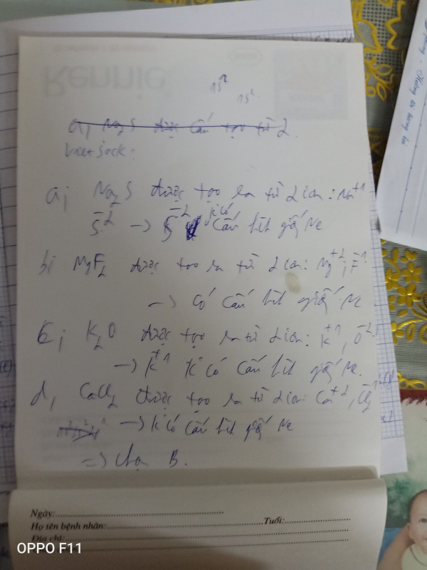Một hợp chất X được cấu tạo từ 3 ion đều có cấu hình electron giống Ne ( Z=10) hãy chọn hợp chất X đúng