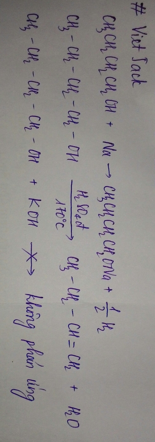Cho butan-1-ol tác dụng với Na,KOH,đun nóng ở 170°C vó xúc tác H2SO4 đặc