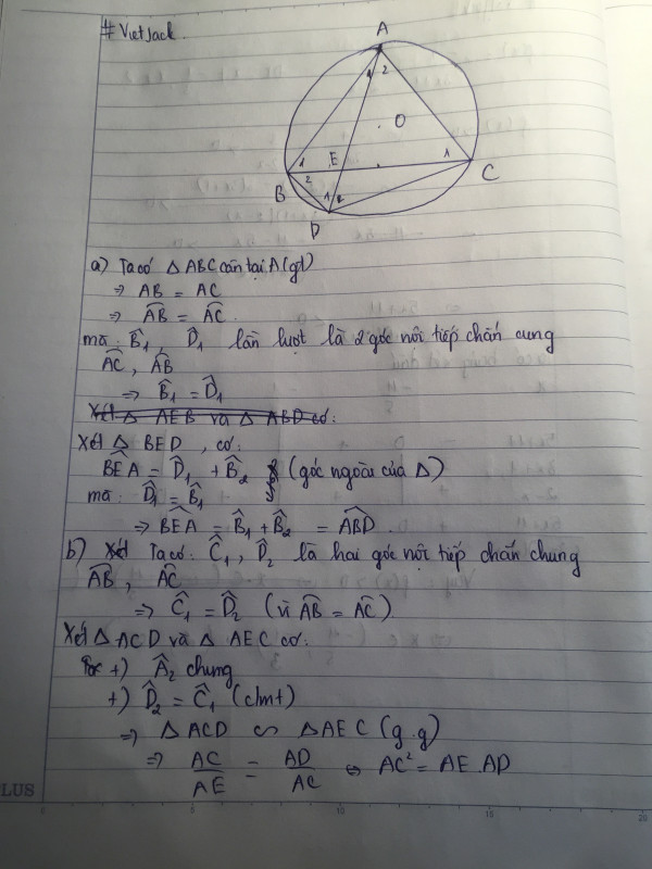 Cho tam giác ABC cân tại A nội tiếp đường tròn (o). Gọi D là điểm thuộc cung BC không chứa điểm A, E là giao điểm của BC và AD