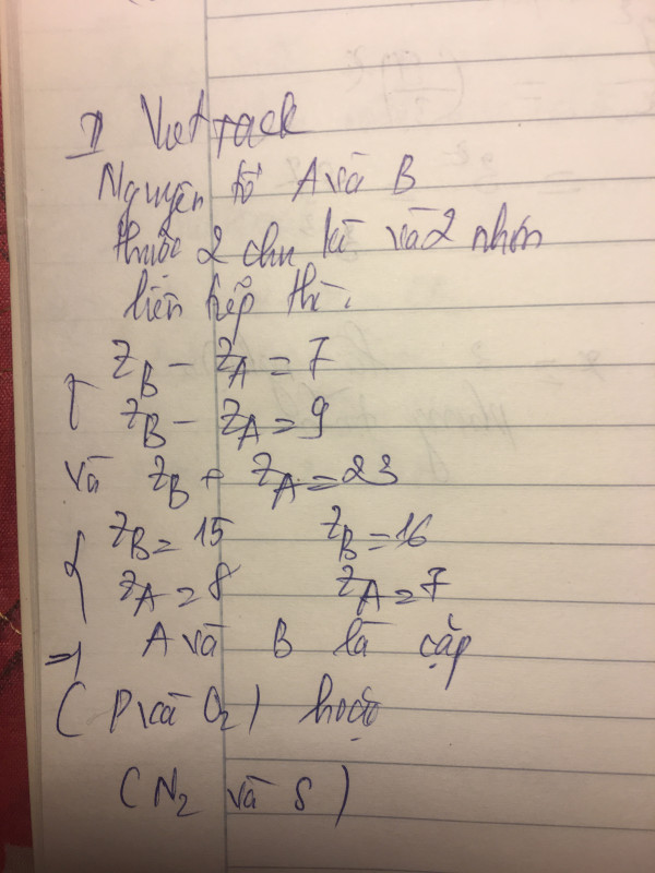 Câu 2: : Cho 2 nguyên tố A và B thuộc 2 chu kỳ và 2 nhóm liên tiếp nhau. Biết tổng điện tích hạt nhân là 23. Tìm A và B