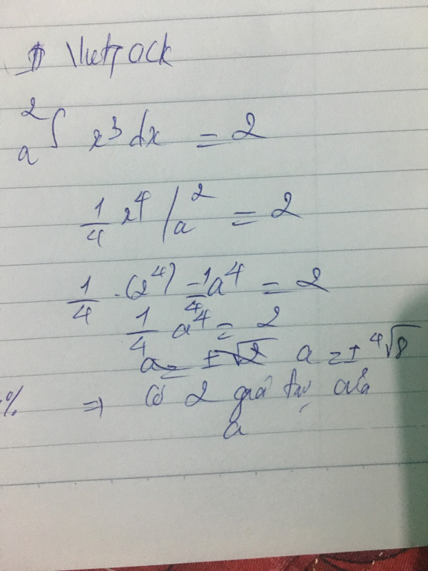 Có bao nhiêu số thực a thỏa mãn đẳng thức tích phân từ a đến 2 của x^3dx=2