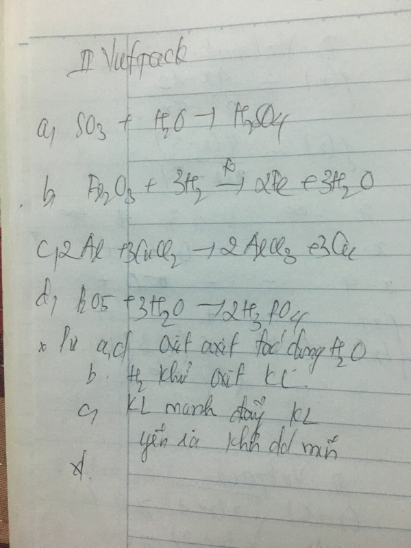 b) sắt (lll) ôxit+ hidro-> sắt + nước