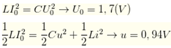 Khi cường độ dòng điện tức thời i = 0,01 A thì điện áp cực đại và điện áp tức thời giữa hai bản tụ lần lượt là: