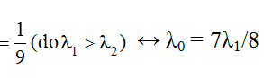 Chiếu lần lượt hai bức xạ điện từ có bước sóng λ1 và λ2 với λ2 = λ1/2 vào một tấm kim loại thì tỉ số động năng ban đầu cực đại của quang electron bứt ra khỏi kim loại là 9. Giới hạn quang điện của kim loại là λ0 . Tỉ số λ0/λ1bằng: