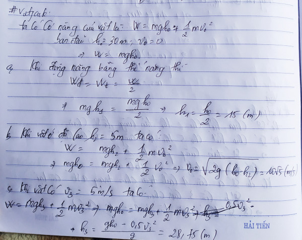 a.Khi vật ở độ cao nào so với mặt đất thì vật có động năg bằng thế năg.