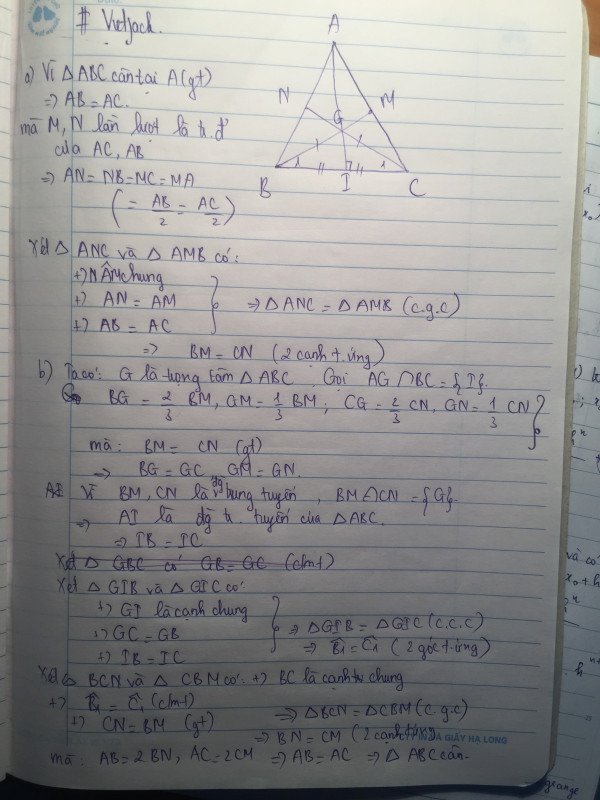Cho tam giác ABC có hai đường trung tuyến BM, CN