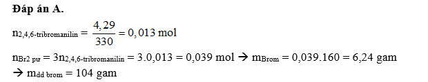 Để điều chế được 4,29 gam chất 2,4,6-tribromanilin thì cần dùng ít nhất bao nhiêu gam dung dịch brom 3% ?