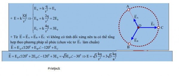 Ở đây thay vì để trong tam giác, mình cho về 3 điểm trên đường tròn, với bán kính r = và các điểm cách nhau góc 120 nhé