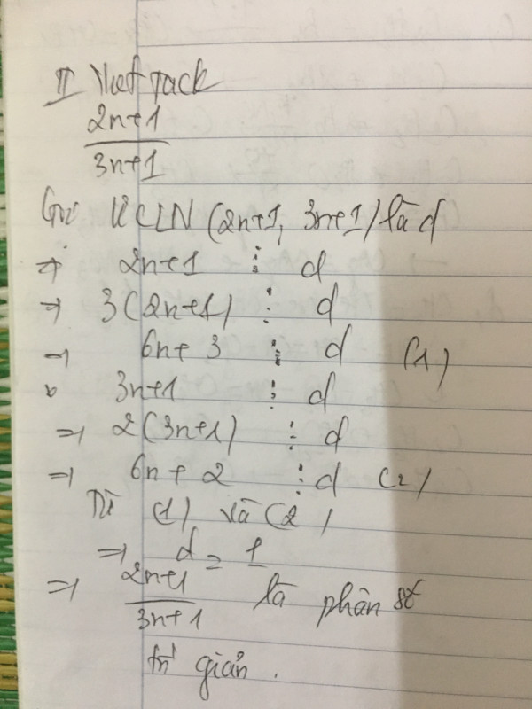 chứng tỏ phân số 2n+1/3n+1 là phân số tối giản