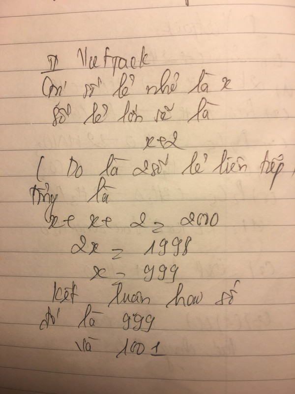 Tổng của hai số lẻ liên tiếp bằng 2000. Tìm hai số đó.
