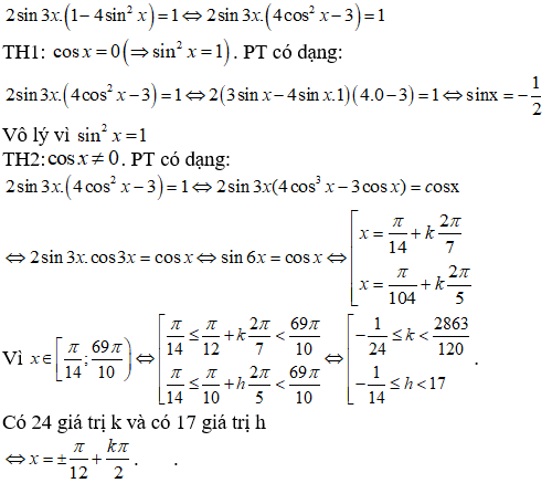 Số nghiệm thuộc [;] của phương trình 2sin3x.(1 – 4sin2x) = 1 là:
