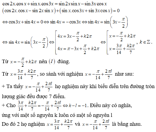 Cho phương trình cos2x.cosx + sinx.cos3x = sin2x.sinx - sin3x.cosx và các họ số thực: