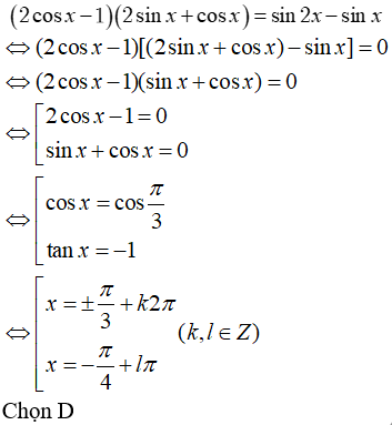 Giải phương trình (2cosx - 1)(2sinx + cosx) = sin2x - sinx