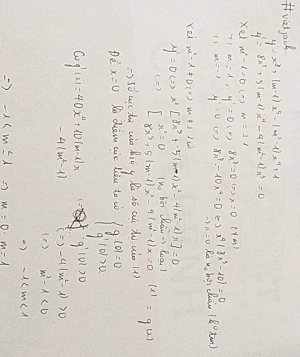 có bao nhiêu giá trị nguyên của m để hàm số y=x8+(m-1)x5-(m2-1)x4+1 đạt cực tiểu tại x=0 ?
