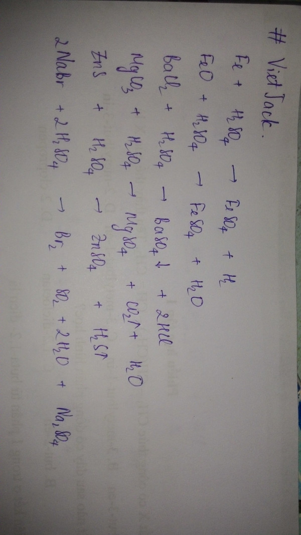 Viết pthh xảy ra nếu có khi cho các chất sau: Fe, Cu, FeO, BaC,MgC, ZnS, SO, NaCL, NaBr lần lượt tác dụng với dung dịch