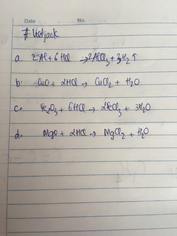 Cho các chất sau CuO, Al,MgO, Fe(OH)2, Fe2O3. Chất nào ở trên tác động với dd HCl đề