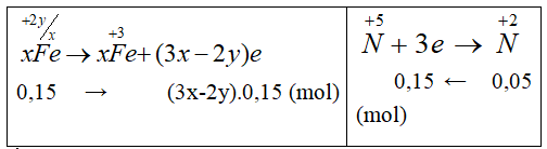 Bảo toàn e ta có: (3x-2y).0,15 = 0,15 => 3x-2y = 1