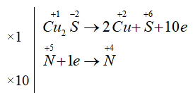 Cu2S + 14HNO3 → 2Cu(NO3)2 + H2SO4 + 10NO2 + 6H2O