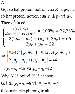Hợp chất Z được tạo bởi hai nguyên tố X và Y có công thức trong đó Y chiếm 72,73% về khối lượng. Biết rằng trong phân tử Z, tổng số hạt (proton, nơtron, electron) là 66, số proton là 22. Nguyên tố Y l